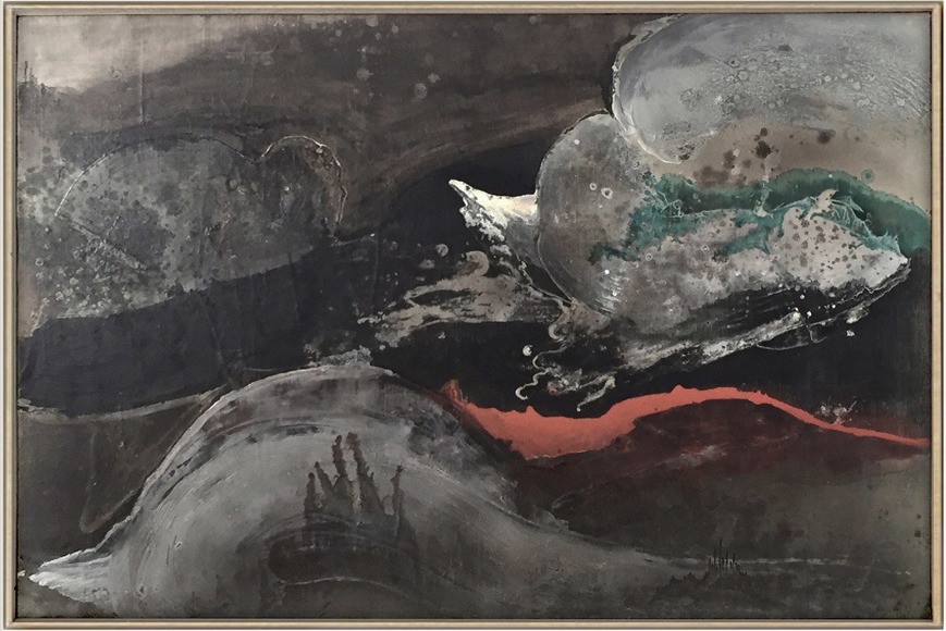 Masatoyo Kishi graduated from the Tokyo University of Science in 1953 with degrees in Physics and Mathematics. After a short career as a mathematics teacher, Kishi began exhibiting with Tekkei Kai, a group of abstract painters affiliated with the Kyoto Museum of Art. He said, “As a Japanese artist in the 1950s in Tokyo, I didn't go to art school. Japanese artists studied literature, economics, science; then you explored art." In 1960 Kishi moved from Japan to San Francisco, where he showed with the Bolles Gallery and also taught at Holy Names College in Oakland and Dominican College in San Rafael.