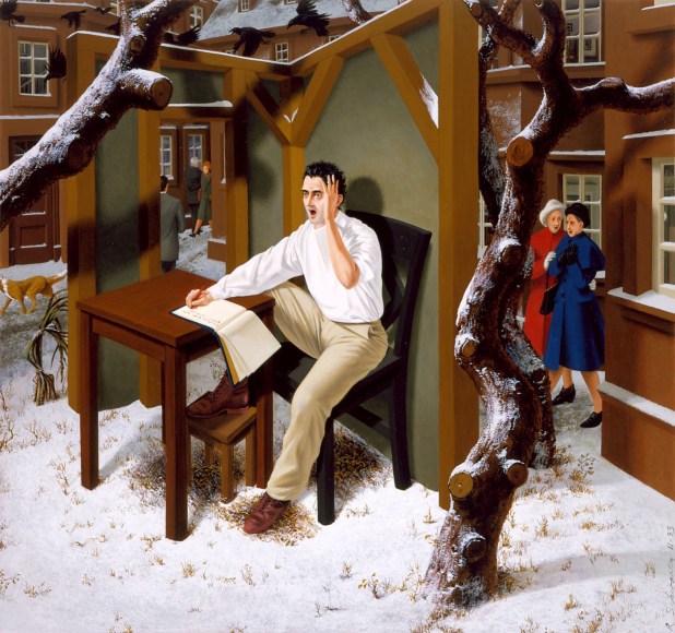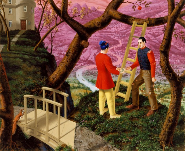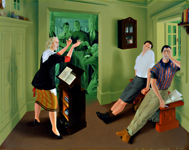 San Francisco-based painter, Robert Schwartz, exquisitely rendered narrative paintings highlight both the absurdity and pathos of the human condition. In the words of New York Times art critic Ken Johnson, "To look at a Schwartz picture is to peer through a window into a parallel universe." A Chicago native, Robert Schwartz adopted San Francisco as his home soon after he arrived in 1971. He had graduated from the Art Institute of Chicago the preceding year and was quickly taken up by Robert Glauber and members of ‘The Hairy Who.’ The emerging gay culture and the social upheaval of the 1960s counterculture provided ample fodder for Schwartz’s penetrating and psychological works in which he exposes both the individual’s and society’s deepest fears and desires.