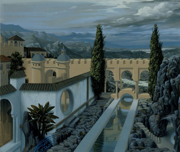 Schwartz wrote that he "[invented] a world to reveal certain truths about being human." His diminutive paintings—they rarely measure more than 7 x 9 inches—consist of incredibly complex compositions that place individuals in realistic, yet highly inventive, environments and situations that are sometimes absurd or apocalyptic. Other themes include the arbitrariness of fate or the silliness of outdated social mores. Critic Donald Kuspit calls Schwartz a "postmodern realist," in that he is "a master at narrating paradox—his works are deceptively clear, as though to disclose the intrinsic connection of opposites by bringing their disconnection into sharp focus." Executed in gouache on paper or in oil on wooden panels, Schwartz's painstaking technique and meticulous detail is often described as a 20th century analogue to the craftsmanship and devotion evident in medieval illuminated manuscripts, such as The Book of Hours, and in 18th century French miniatures.